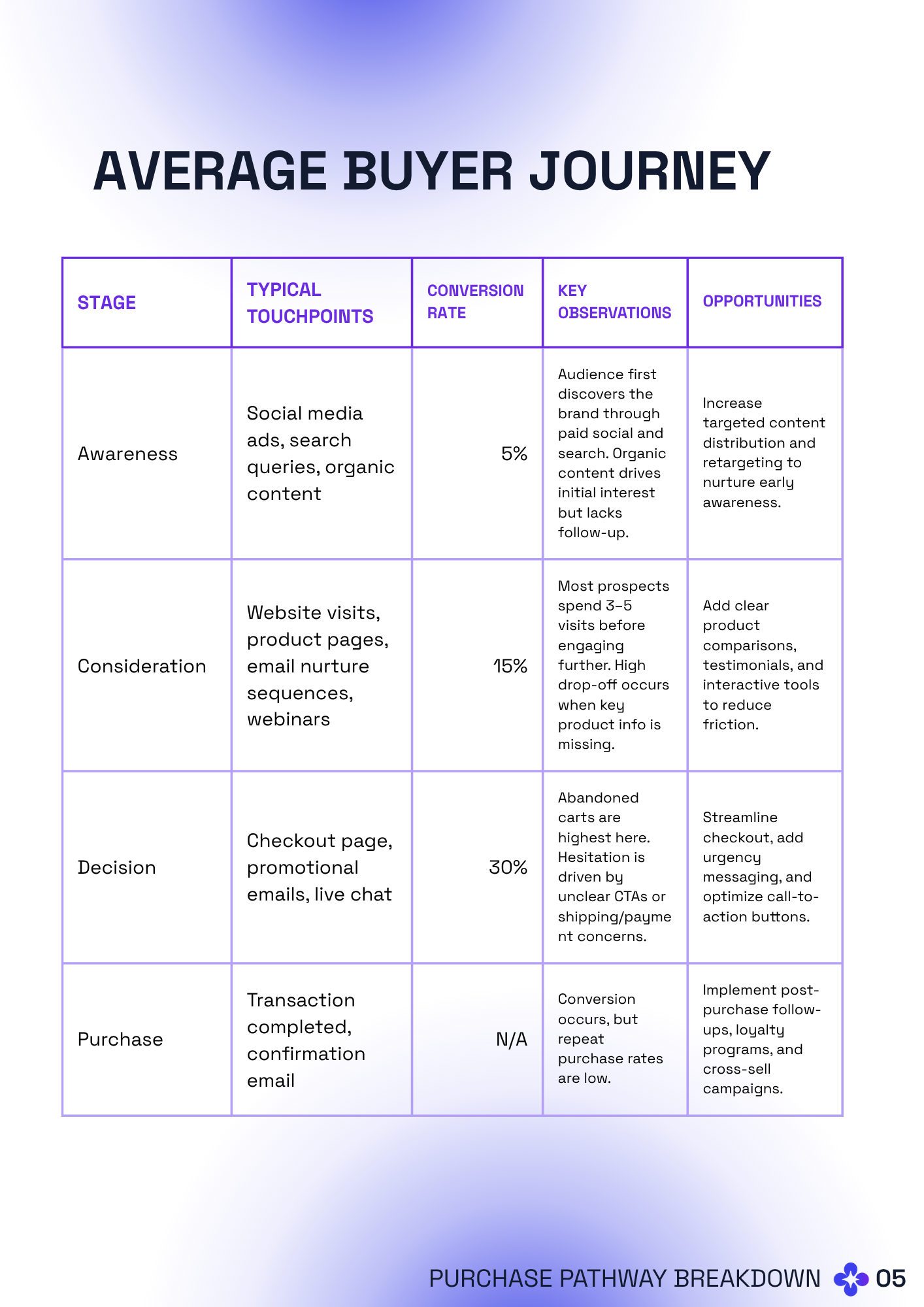 The Audience Deep Dive uncovers the people behind your data. It analyses who is engaging with your brand, what drives their decisions, and how their behaviour changes across channels. It gives you a clear view of your true audience segments, motivations, and buying triggers so your marketing can speak directly to the people most likely to convert.